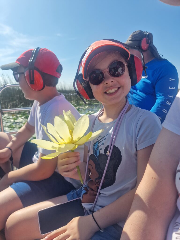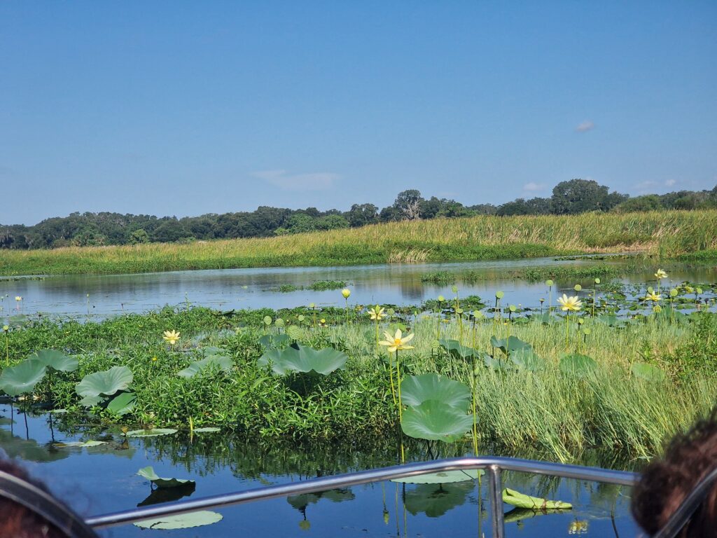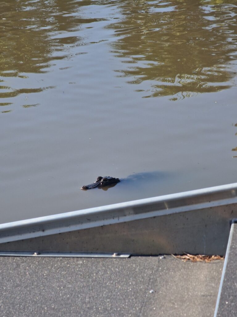 Ce matin, nous avons pris un Uber, direction « Gator Airboat Rides », un petit tour dans les « Everglades » locales. Pendant une demi-heure, nous allons traverser des plans d’eau sous le soleil (ça fait du bien le vent de la vitesse).