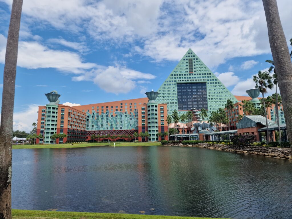 Pour y aller, nous prenons le skyliner direction Epcot. Arrivés sur place, un bateau attend, celui-ci fait le tour du lac proche des hôtels Boardwalk, Swan & Dolphins…